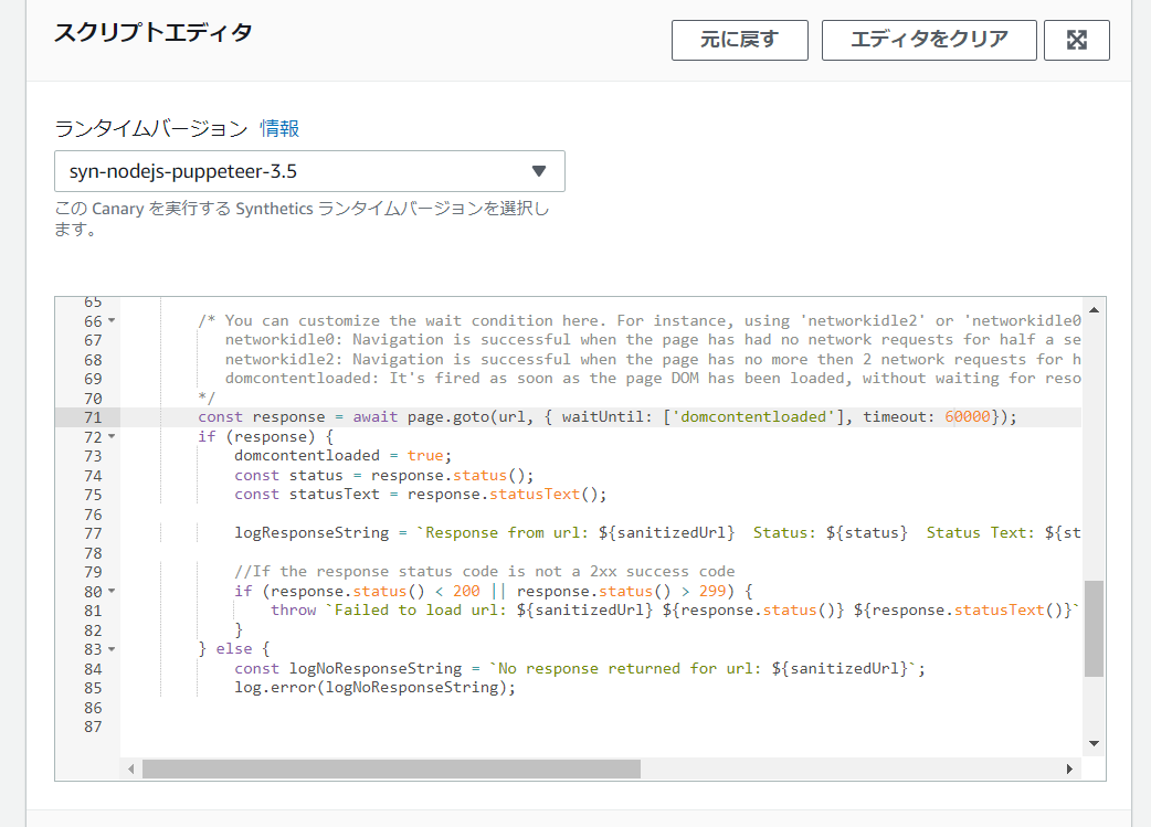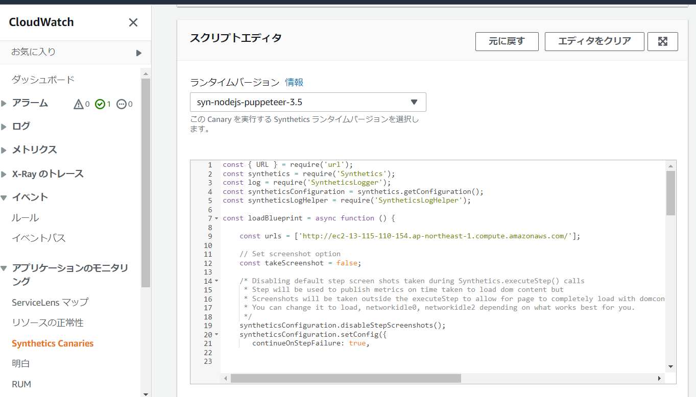 CloudWatch Canaryのスクリプトに設定されているタイムアウト値を変更する方法