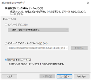 ・「後でOSをインストール」を選択します。