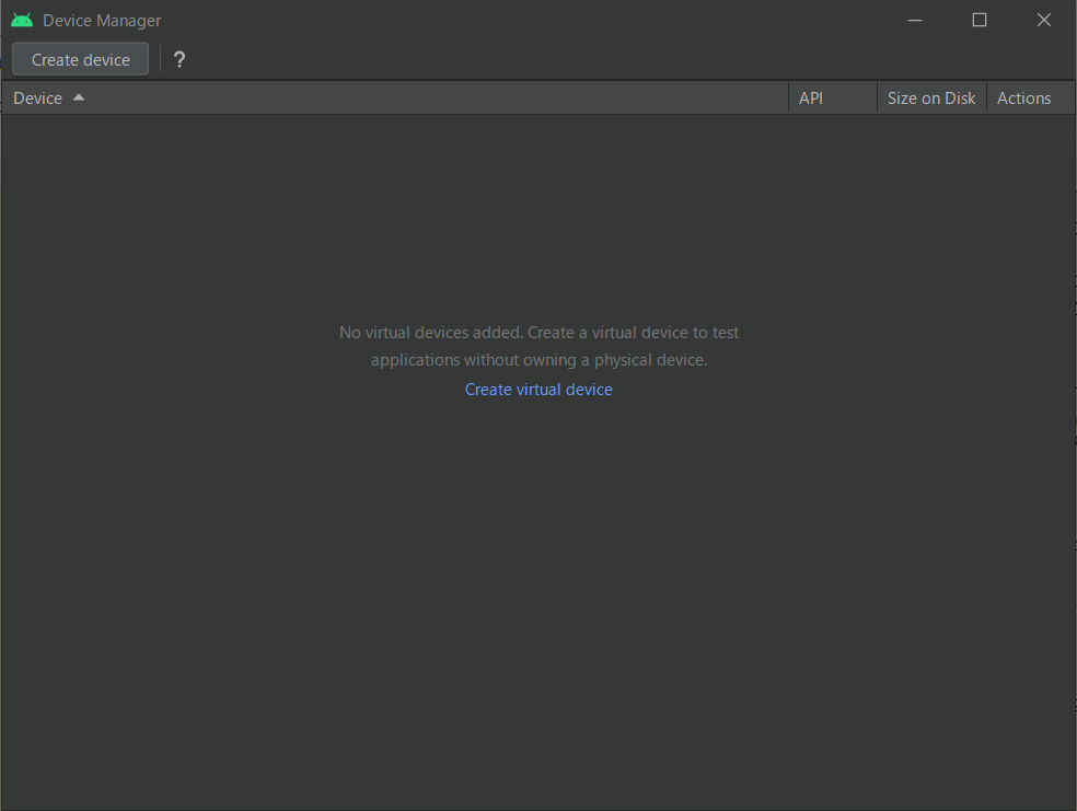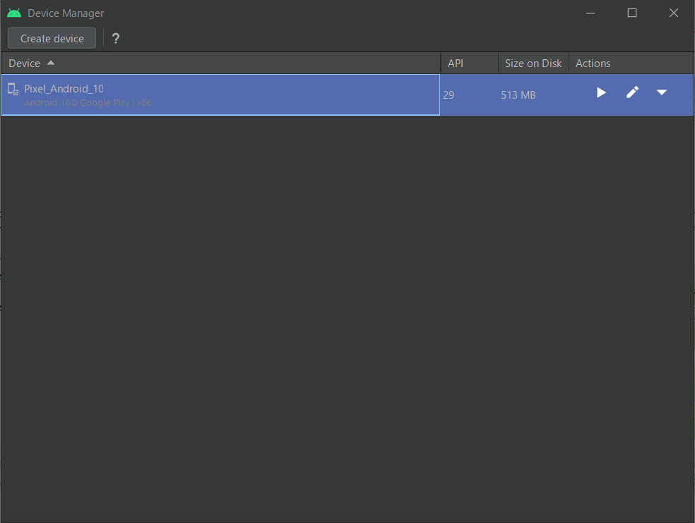 メニュー下部その他のアクション内にある「Virtual Device Manager」を押下