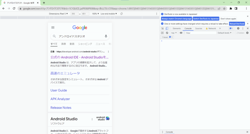 Android Studioにはエミュレータがあり、スマホ画面など様々なデバイスの挙動を確認できる。