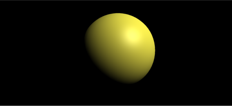 <!DOCTYPE html> <html lang="ja"> <head> <meta charset="UTF-8"> <meta http-equiv="X-UA-Compatible" content="IE=edge"> <meta name="viewport" content="width=device-width, initial-scale=1.0"> <title>Three.js</title> <script type="text/javascript" src="three.js"></script> </head> <body> <canvas id="myCanvas"></canvas> <script> function init() { const SCENE = new THREE.Scene(); const CAMERA = new THREE.PerspectiveCamera(50, window.innerWidth / window.innerHeight, 0.1, 1000); CAMERA.position.set(0, 0, +1000); const SPHERE_GEOMETRY = new THREE.SphereGeometry(300, 32, 32); const SPHERE_MATERIAL = new THREE.MeshPhongMaterial({ color: 0xFFF450 }); const SPHERE = new THREE.Mesh(SPHERE_GEOMETRY, SPHERE_MATERIAL); SCENE.add(SPHERE); const LIGHT = new THREE.DirectionalLight(0xFFFFFF, 1); LIGHT.position.set(1, 1, 1); SCENE.add(LIGHT); const RENDERER = new THREE.WebGLRenderer({ canvas: document.querySelector('#myCanvas'), }); RENDERER.setSize(window.innerWidth, window.innerHeight); RENDERER.setPixelRatio(window.devicePixelRatio); RENDERER.render(SCENE, CAMERA); } window.addEventListener('DOMContentLoaded', init); </script> </body> </html> |