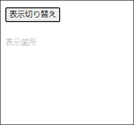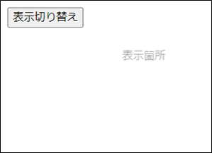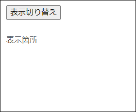 “表示切り替え”ボタンのクリックイベントでdisplayをtrue、falseに切り替えており、pタグで囲まれた”表示箇所”にv-if=” display”と指定して、文言の表示を切り替えを行っています。