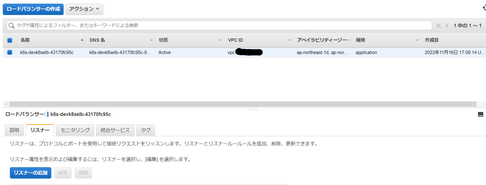 ①Application Load Balancerが自動で作成されていることを確認します。