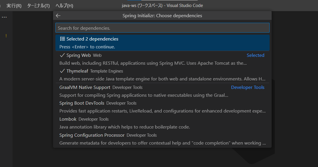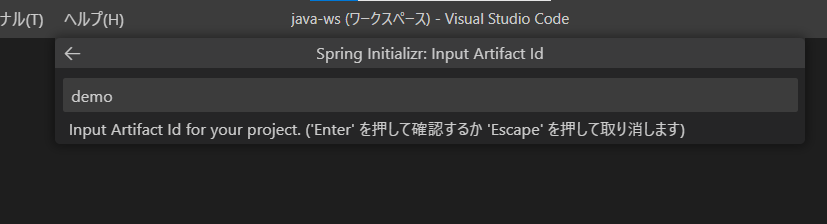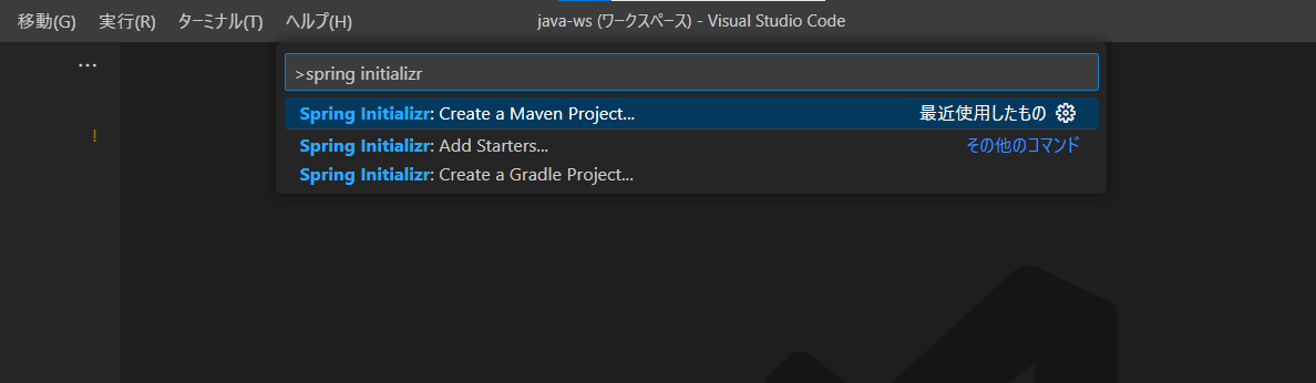 ②spring initializrと入力し、表示される中から「create a maven project」を選択します。