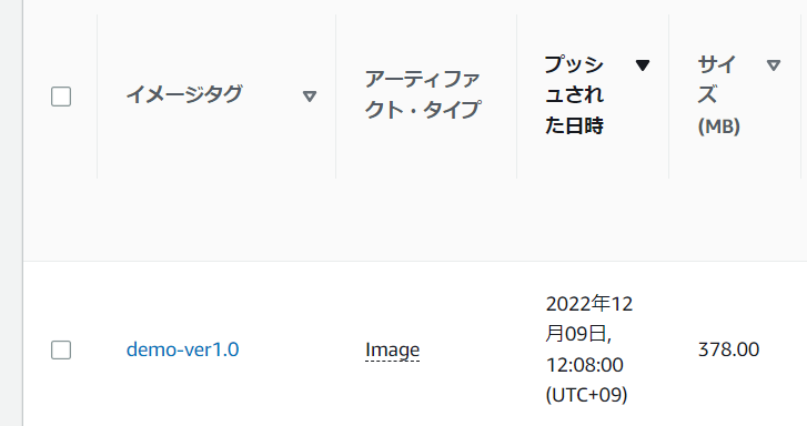 sudo docker tag demo:ver1.0 XXXXXXXX.dkr.ecr.ap-northeast-1.amazonaws.com/demo-ecr:demo-ver1.0 |