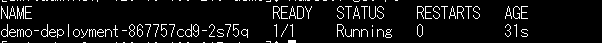 ※demo-deployment-74d5845f4-hpjqjの部分は上記で確認したpod名に変更してください。