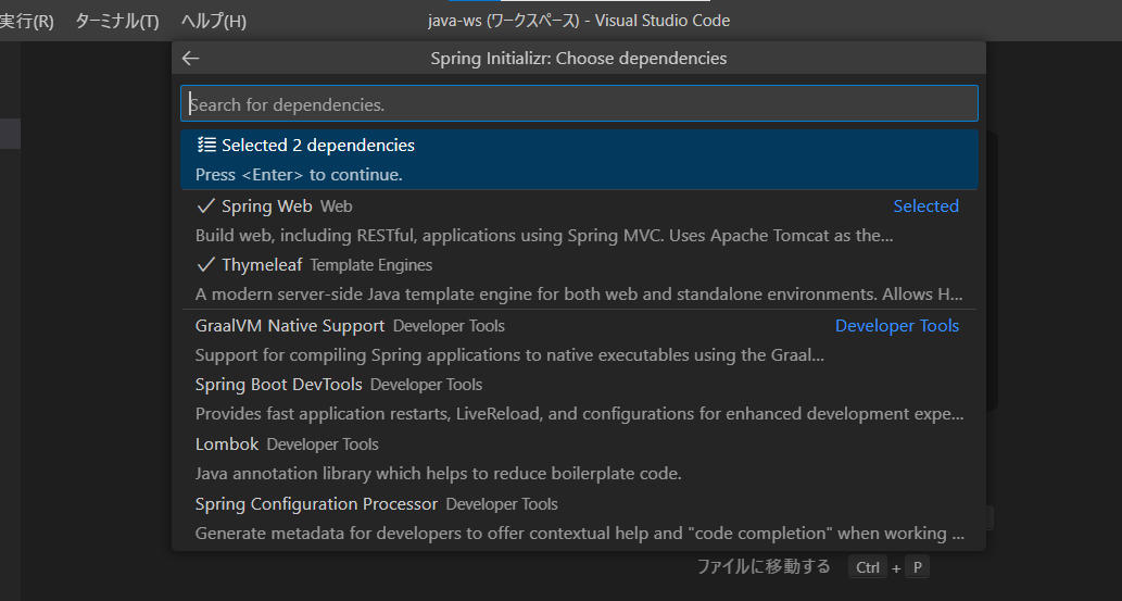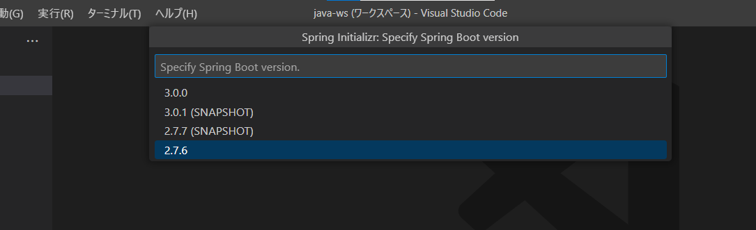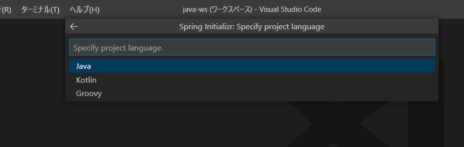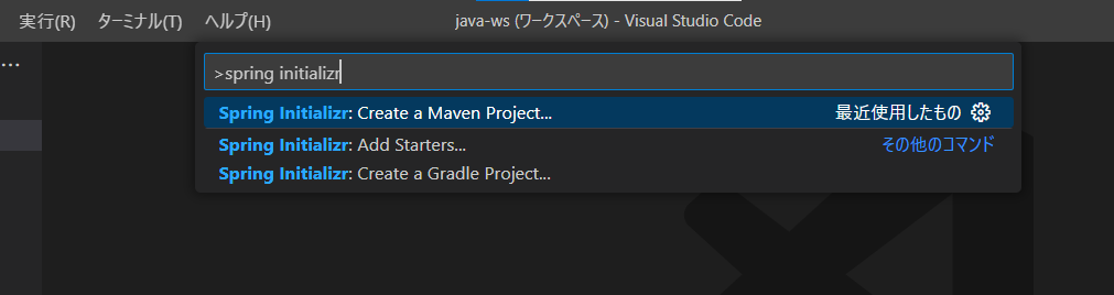 ②spring initializrと入力し、表示される中から「create a maven project」を選択します。