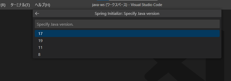 ※ここは自分の環境にイントールされているJavaバージョンを選択してください。