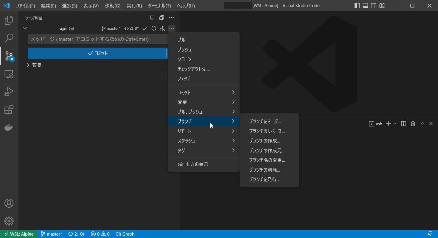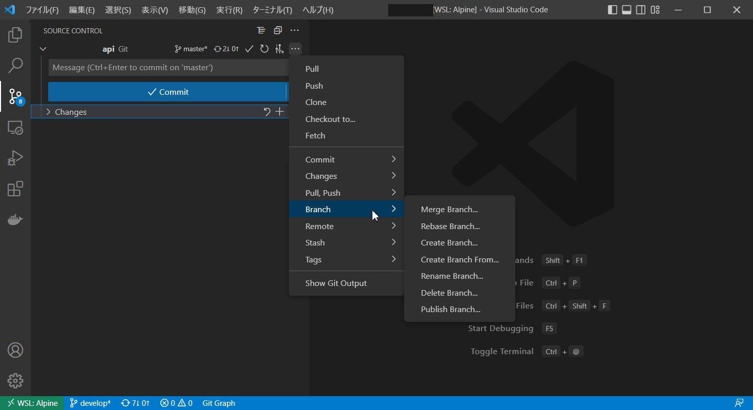 ここでやっと、Gitのメニューやダイアログが日本語になりました。